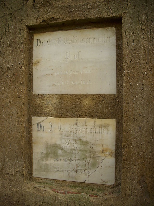 Grabtafel für Johann Georg Rosenmüller und Sohn Ernst Karl, Alter Johannisfriedhof in Leipzig
